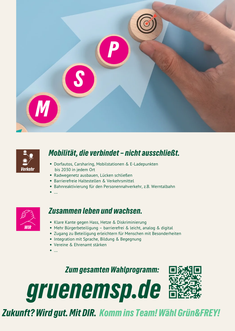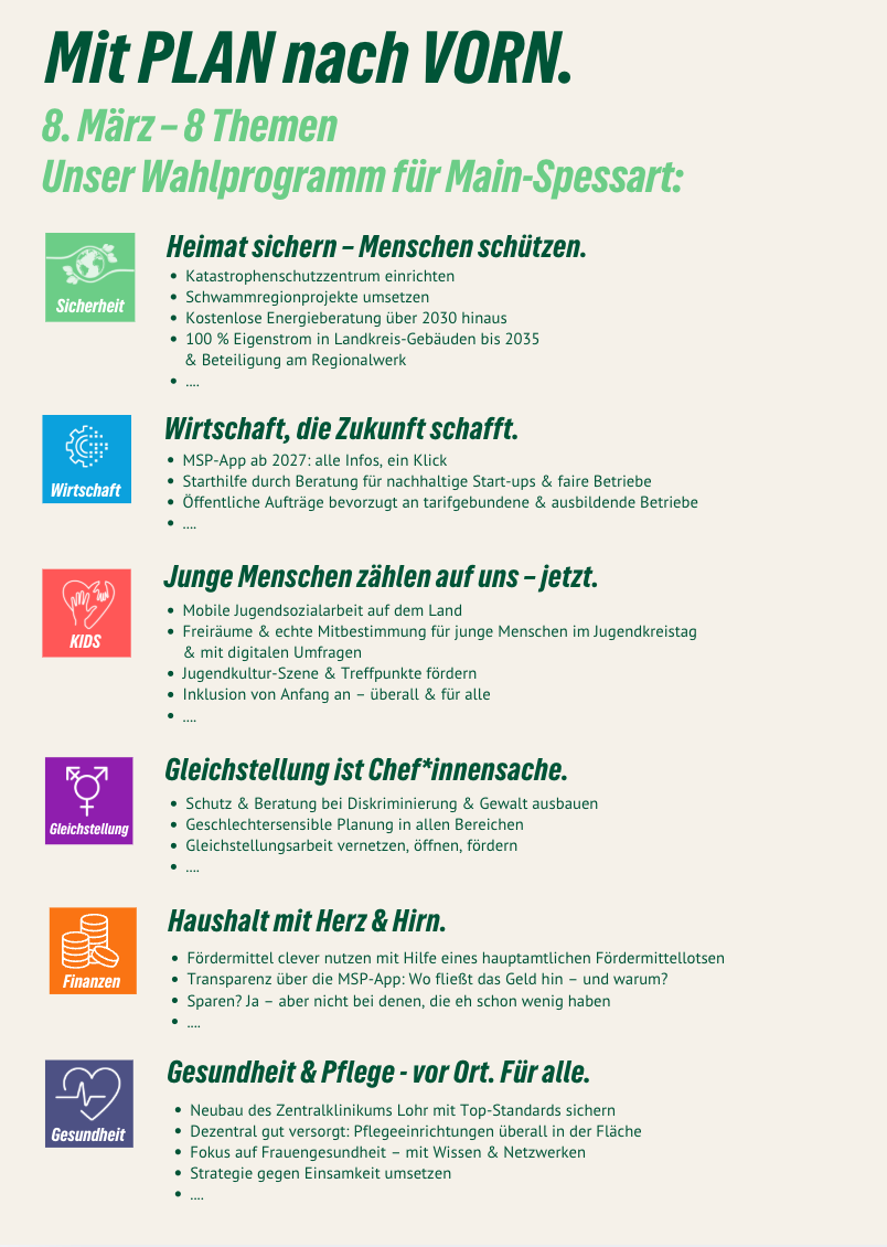 Wahlprogramm für Main-Spessart Hier erfahren Sie mehr über unser Wahlprogramm Kommunalwahl 2026! Unser ausführliches Landkreis-Wahlprogramm: Wahlprogramm downloaden